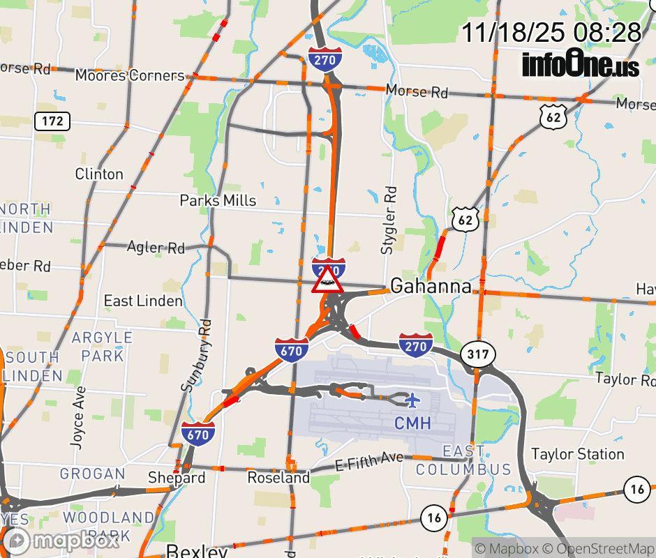 The right shoulder is blocked on I-270 South at I-670 West, due to a crash. ![]() |