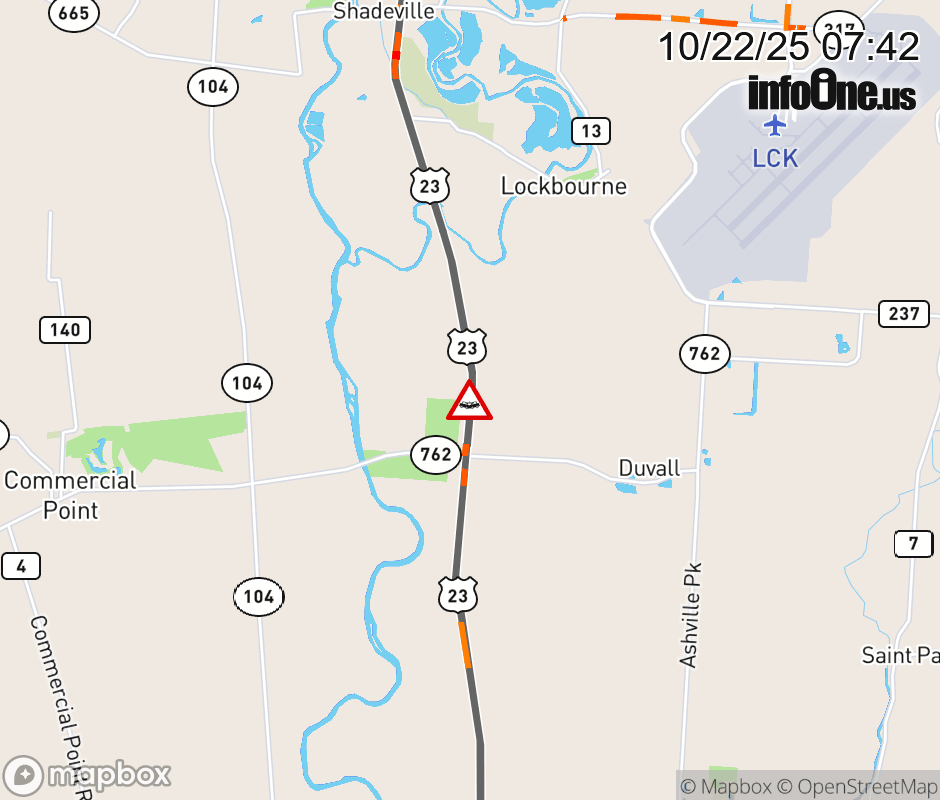 The left lane is blocked on US-23 South beyond Picway Rd, due to a crash. ![]() |