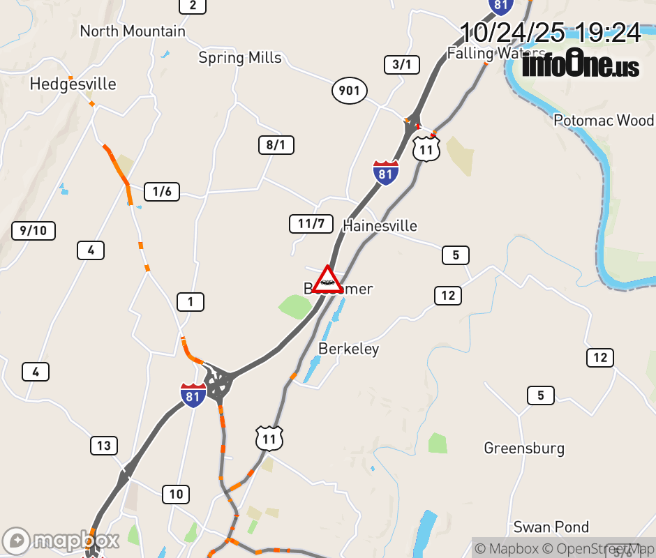 Canceled 10/24/25 9:28 PM Location: I-81 at MM 18.0, WV Accident.