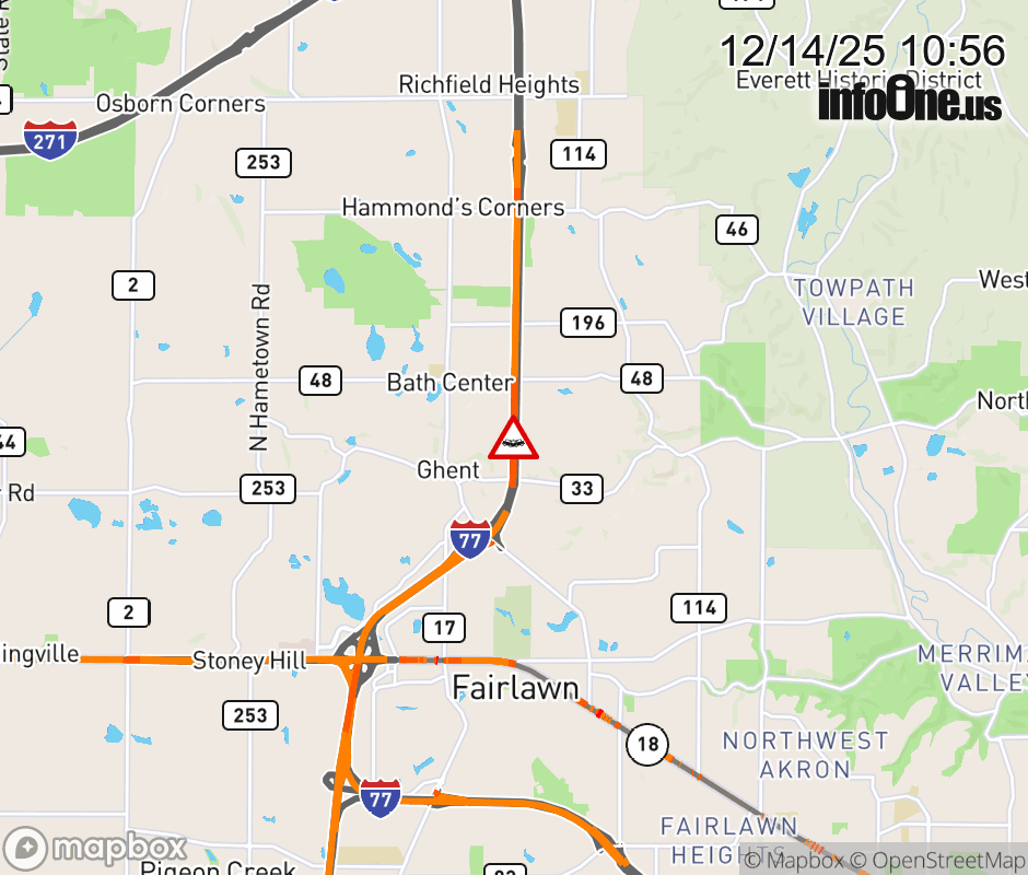 The right lane is blocked on I-77 South beyond Summit County Rest Area 4-32, due to a crash. ![]() |