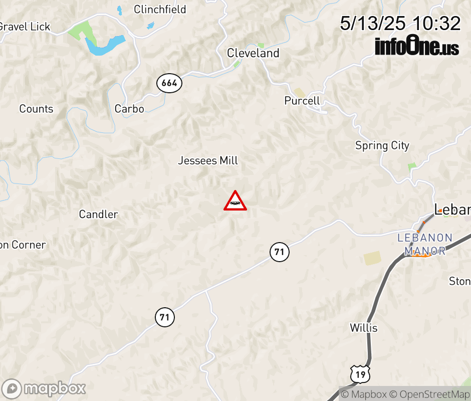 On Rt. 645 East in the County of Russell, in the vicinity of Long Hollow Rd; Rt. 640E/W (Russell County), motorists can expect delays due to a vehicle crash. Lane closures exist. ![]() |