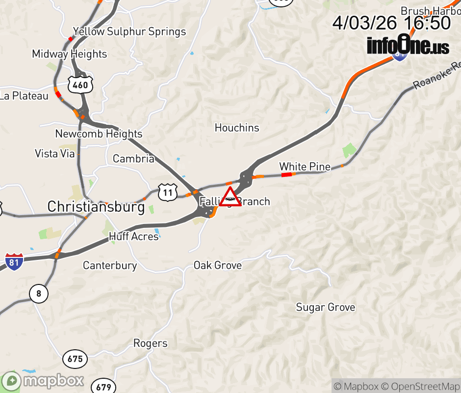 On I-81 at mile marker 118 in the Town of Christiansburg, motorists can expect delays due to a vehicle crash. The north left shoulder is closed. ![]() |