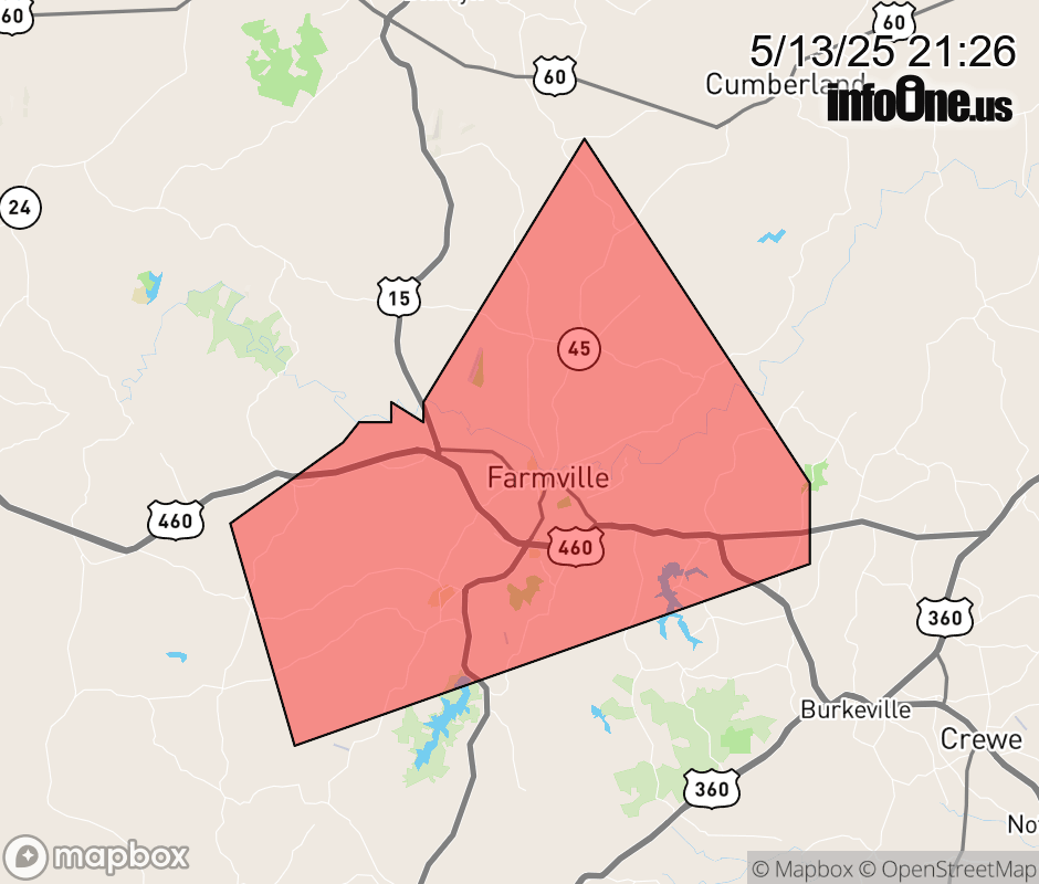 Canceled 5/13/25 9:45 PM Severe Thunderstorm Warning issued May 13 at 9:25PM EDT until May 13 at 9:45PM EDT by NWS Wakefield VA At 925 PM EDT, a severe thunderstorm was located over Farmville, moving northeast at 15 mph. HAZARD...60 mph wind gusts. SOURCE...Radar indicated. IMPACT...Expect damage to trees and powerlines. Locations impacted include... Farmville, Hampden Sydney College, Longwood University, Hampden Sydney, Rice, Raines Tavern, Tuggle, Allens Mill, Hawk, Kingsville, Reeds, Stoddert, Worsham, and Briery Creek Lake. ![]() |