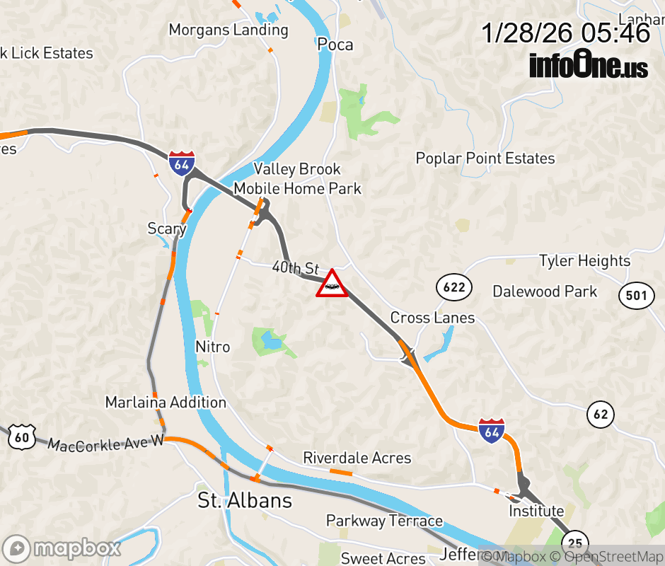 Canceled 1/28/26 6:10 AM Location: I-64 at MM 46.0, WV Accident.