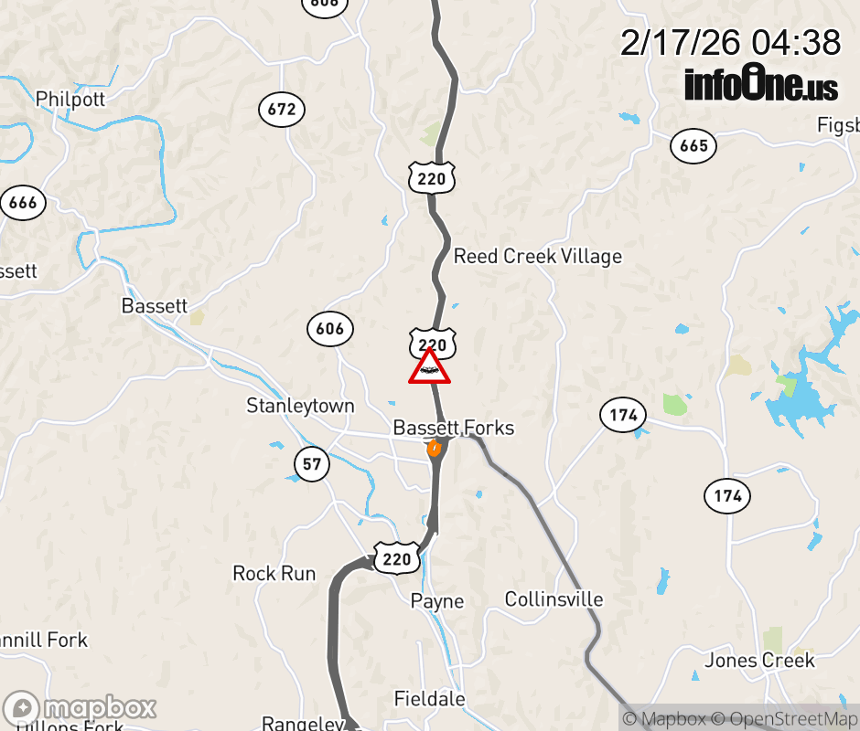 On US-220 North in the County of Henry, in the vicinity of Rt. 1210E/W (Henry County), motorists can expect delays due to a vehicle crash. Lane closures exist. ![]() |