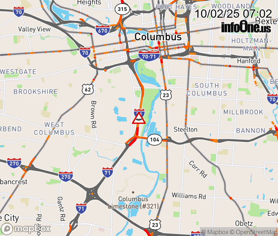 The 2 left lanes are blocked on I-71 North beyond SR-104/Frank Rd, due to a crash. Updated: Thu 10/2/25 7:02 AM EDT ![]() Updated: Thu 10/2/25 7:02 AM EDT |