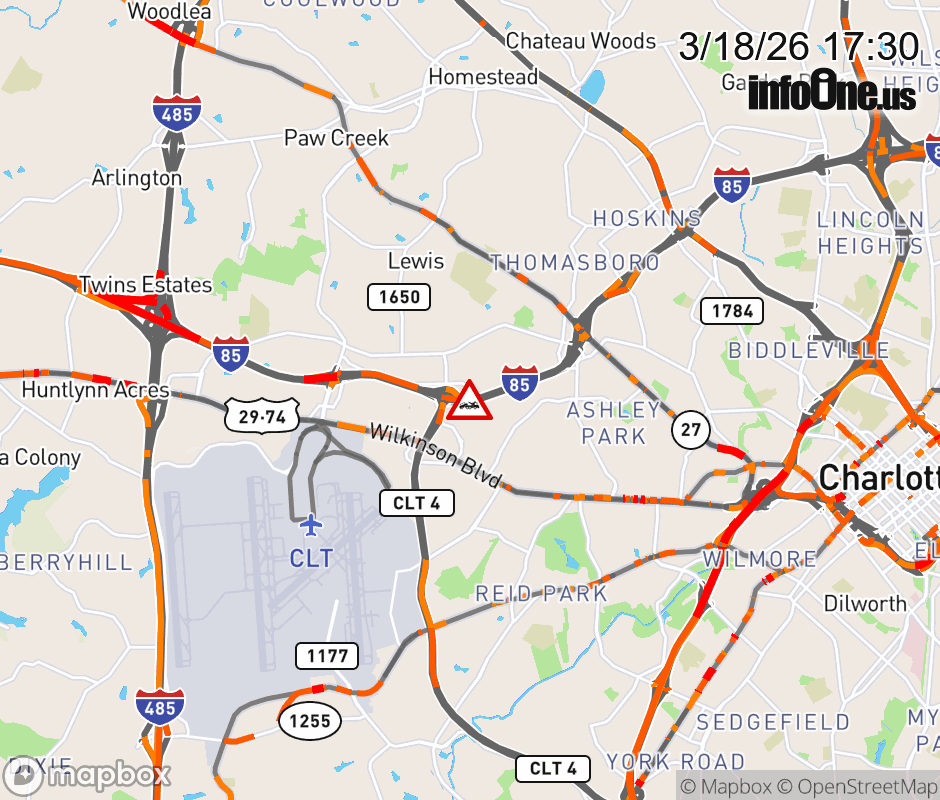 The right ramp lane is closed at Exit 33 (Billy Graham Pkwy.). ![]() |