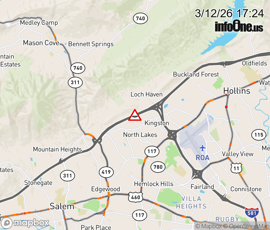 On I-81 at mile marker 143 in the County of Roanoke, motorists can expect delays due to a vehicle crash. The south right shoulder is closed. ![]() |