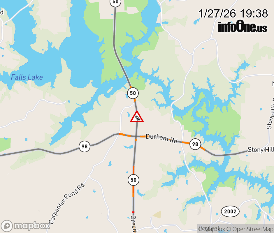 A lane is closed at Old Creedmoor Rd. Updated: Tue 1/27/26 7:38 PM EST ![]() Updated: Tue 1/27/26 7:38 PM EST |
