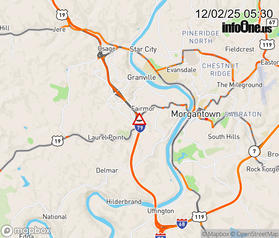 Vehicle Crash on US-19 (Fairmont Rd/I-79 Ramps). ![]() |