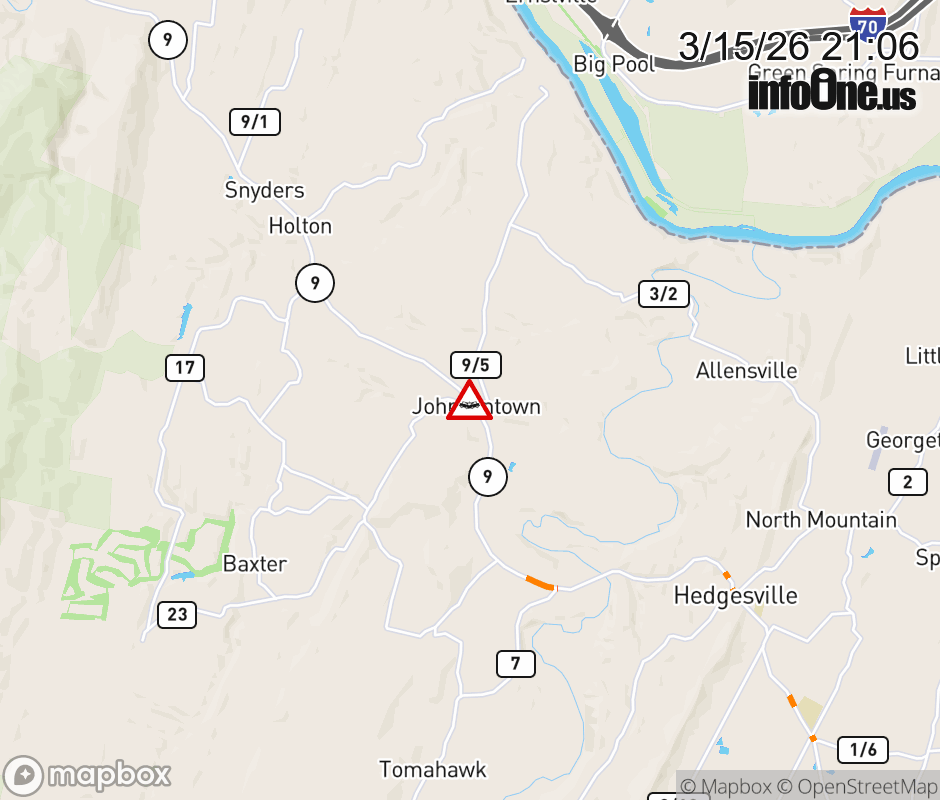 Vehicle Crash on WV-9 (9100 Hedgesville Rd). Updated: Sun 3/15/26 9:06 PM EDT ![]() Updated: Sun 3/15/26 9:06 PM EDT |