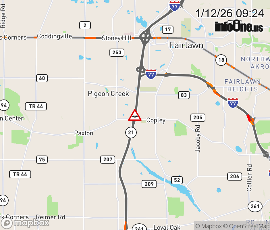 Ramp to SR-162/Copley Rd from SR-21 South is blocked due to crash. ![]() |