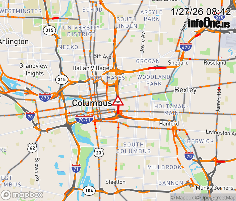 The 2 left lanes are blocked on I-71 North at I-670 West, due to a crash. Updated: Tue 1/27/26 8:42 AM EST ![]() Updated: Tue 1/27/26 8:42 AM EST |