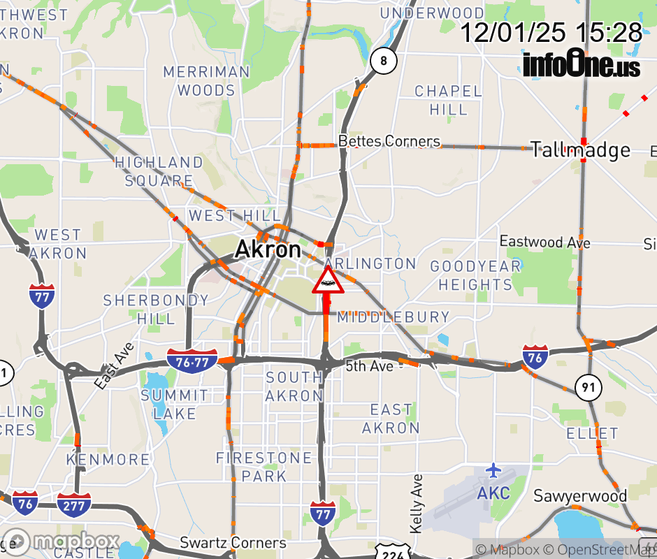 Expect lane closures on Ramp from Fountain St to OH-8 N, due to a crash. ![]() |