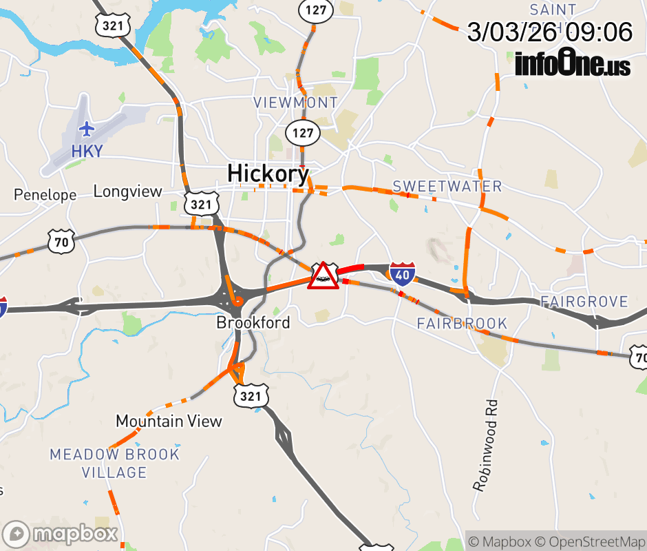 The right shoulder is closed past Exit 23 (Lenoir Rhyne Blvd.). Updated: Tue 3/3/26 9:06 AM EST ![]() Updated: Tue 3/3/26 9:06 AM EST |