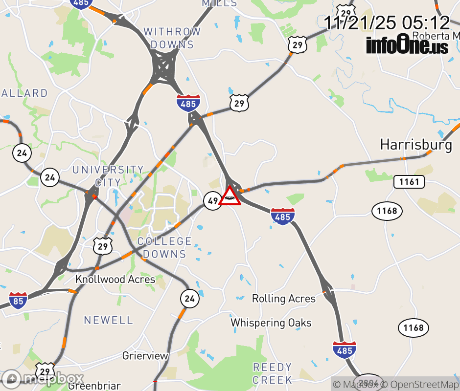 Canceled 11/21/25 5:28 AM Location: University City Blvd (NC-49N), NC Vehicle Crash.