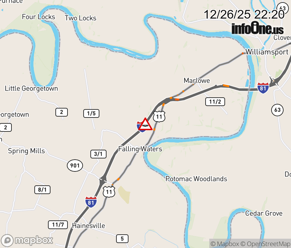 Vehicle Crash on I-81N at Mile Marker 22.5. The northbound 2 right lanes are closed. Updated: Fri 12/26/25 10:20 PM EST ![]() Updated: Fri 12/26/25 10:20 PM EST |