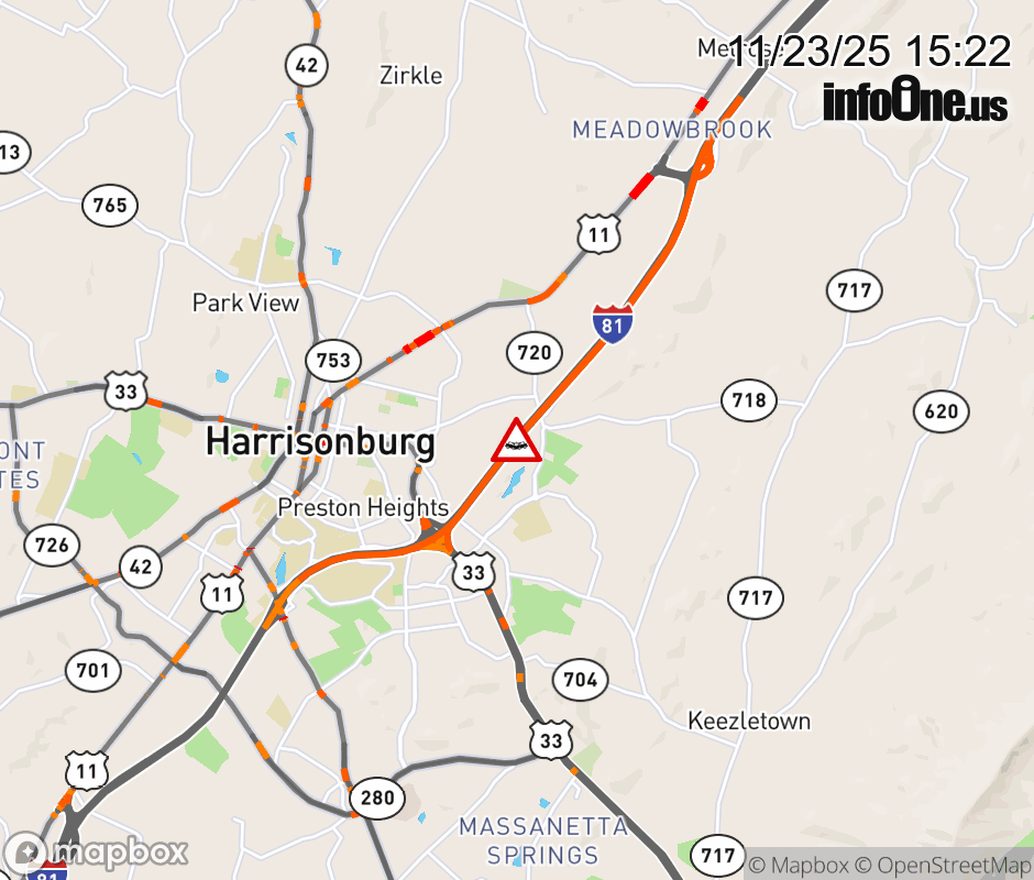 On I-81 North at mile marker 248.5 in the County of Rockingham, motorists can expect delays due to a tractor trailer crash. Traffic backups are approximately 2.0 miles. Updated: Sun 11/23/25 3:22 PM EST ![]() Updated: Sun 11/23/25 3:22 PM EST |