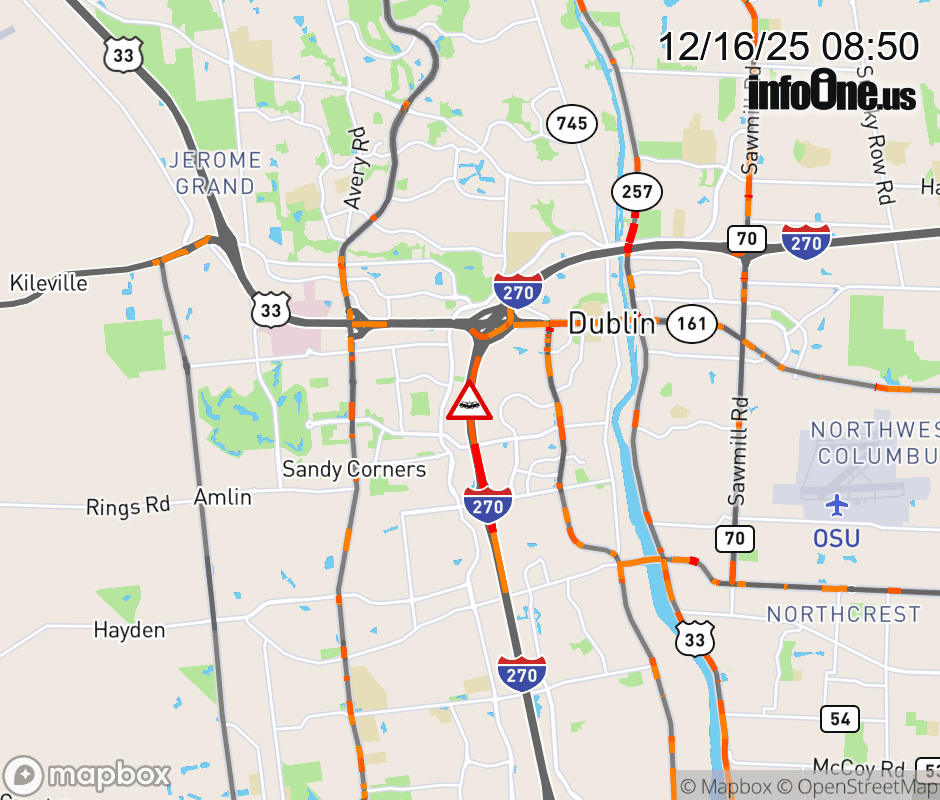 The right shoulder is blocked on I-270 North beyond Tuttle Crossing Blvd, due to a crash. Updated: Tue 12/16/25 8:50 AM EST ![]() Updated: Tue 12/16/25 8:50 AM EST |