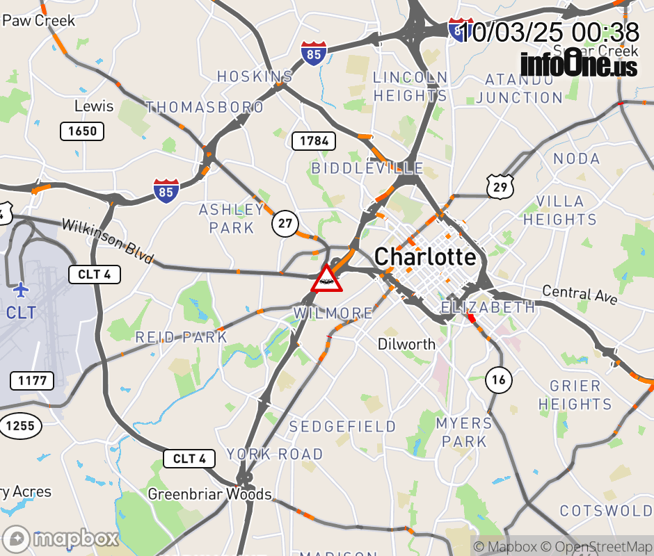 The right shoulder is closed near Exit 9 (I-277). ![]() |