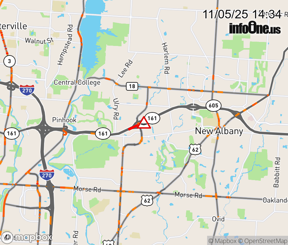 The right lane is blocked on SR-161 East beyond Hamilton Rd, due to a crash. Updated: Wed 11/5/25 2:34 PM EST ![]() Updated: Wed 11/5/25 2:34 PM EST |