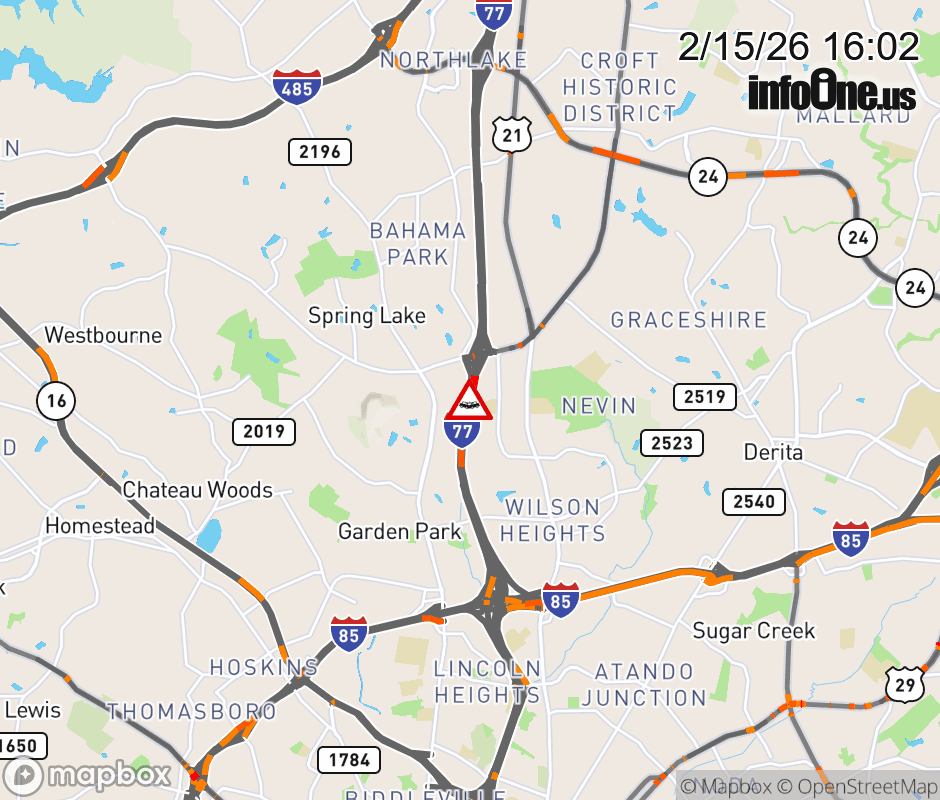 Canceled 2/15/26 4:30 PM Location: I-77 TOLN at MM 15, NC Vehicle Crash.