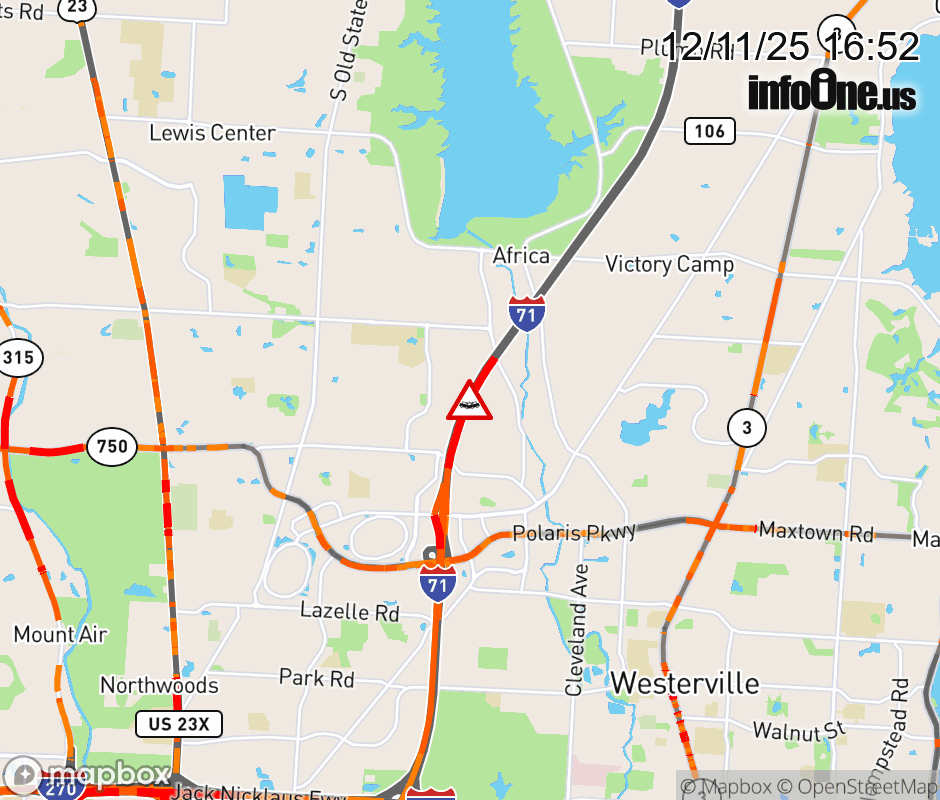 The right shoulder is blocked on I-71 North beyond Polaris Pkwy/Gemini Place, due to a crash. ![]() |