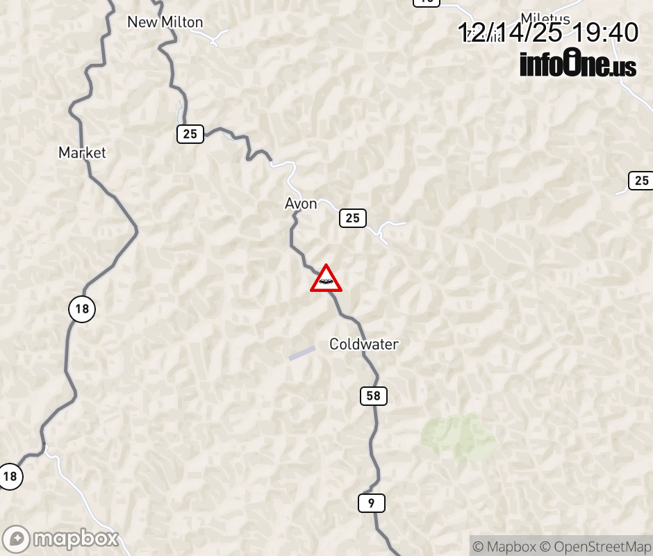 Vehicle Crash on CR-58 (1372 Indian Fork). The northbound road is closed. The southbound road is closed. Updated: Sun 12/14/25 7:40 PM EST ![]() Updated: Sun 12/14/25 7:40 PM EST |