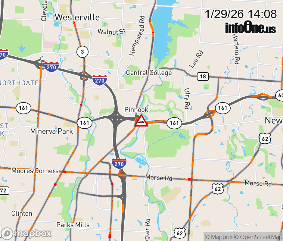 The left lane is blocked on SR-161 West Collector beyond Little Turtle Way, due to a disabled vehicle. Updated: Thu 1/29/26 2:08 PM EST ![]() Updated: Thu 1/29/26 2:08 PM EST |