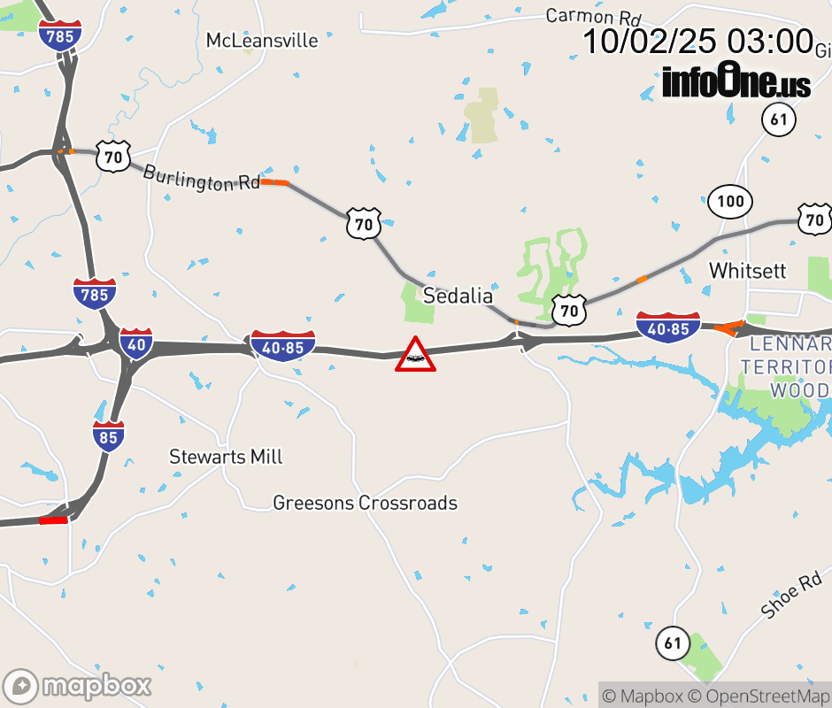 Location: I-85N at MM 134, NC Vehicle Crash.
