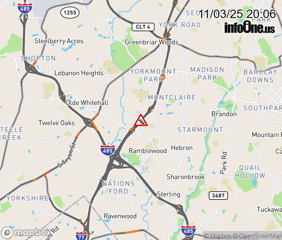The two left lane are closed past Exit 3 (W Arrowood Rd). Updated: Mon 11/3/25 8:06 PM EST ![]() Updated: Mon 11/3/25 8:06 PM EST |