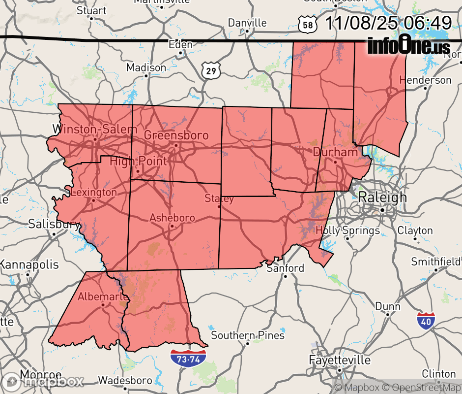 Canceled 11/8/25 8:30 AM Special Weather Statement issued November 8 at 6:48AM EST by NWS Raleigh NC Areas of dense fog over the Piedmont this morning will disperse through 8 or 9 AM. Motorists are encouraged to be alert for rapidly changing visibility, slow down, and allow extra following distance. ![]() |