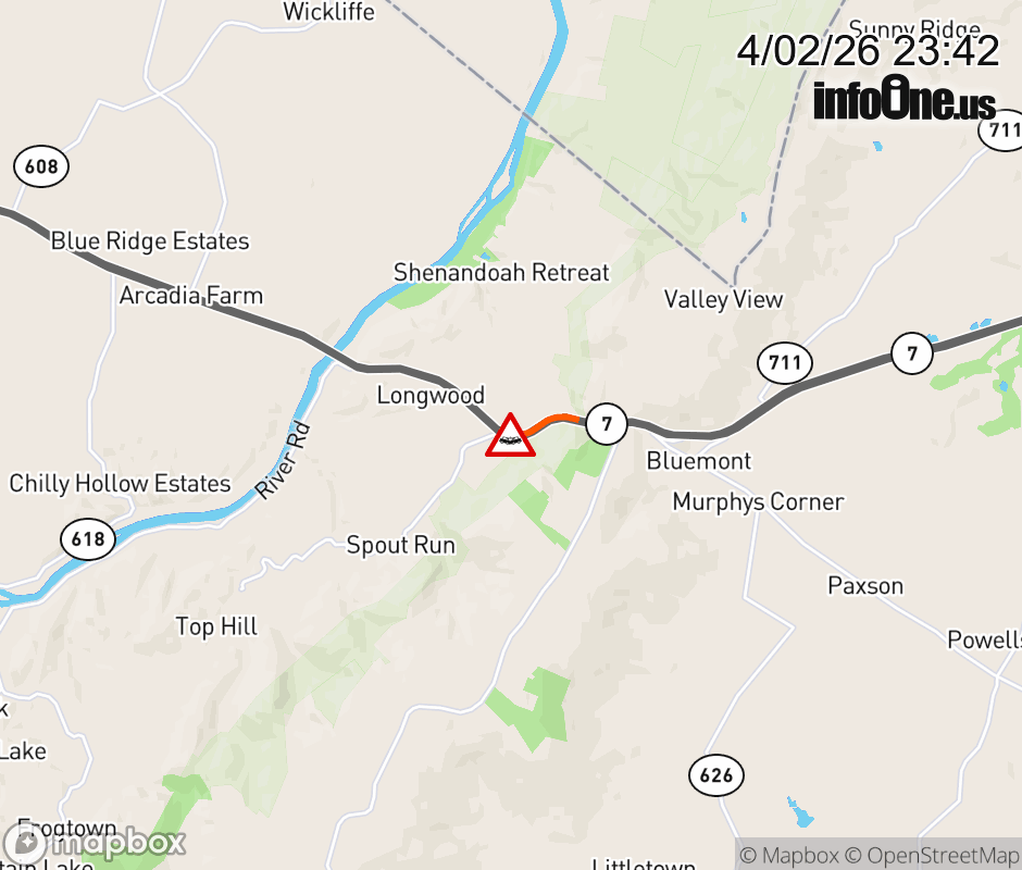 On VA-7 in the County of Clarke, in the vicinity of Good Shepherd Rd; Rt. 604N/S (Clarke County), motorists can expect delays due to a vehicle crash. All west lanes are closed. ![]() |