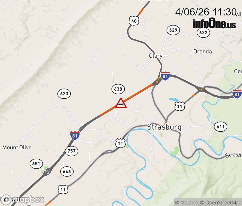 On I-81 at mile marker 295 in the County of Shenandoah, motorists can expect delays due to a vehicle crash. The south right shoulder is closed. ![]() |