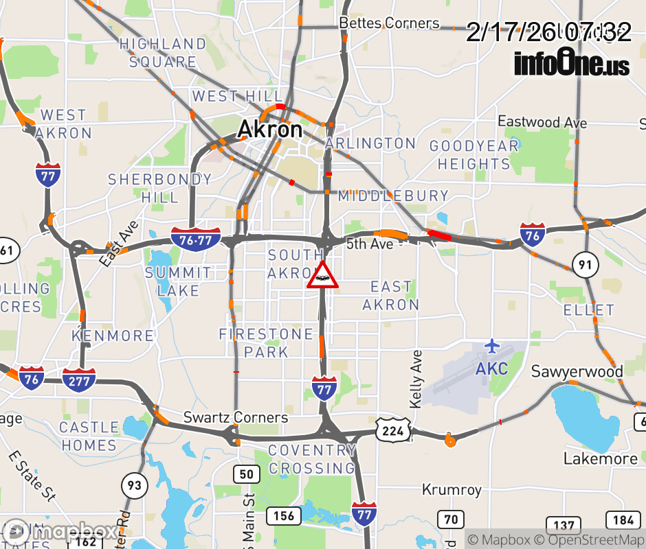 The right shoulder is blocked on I-77 North at SR-8 North, due to a crash. ![]() |