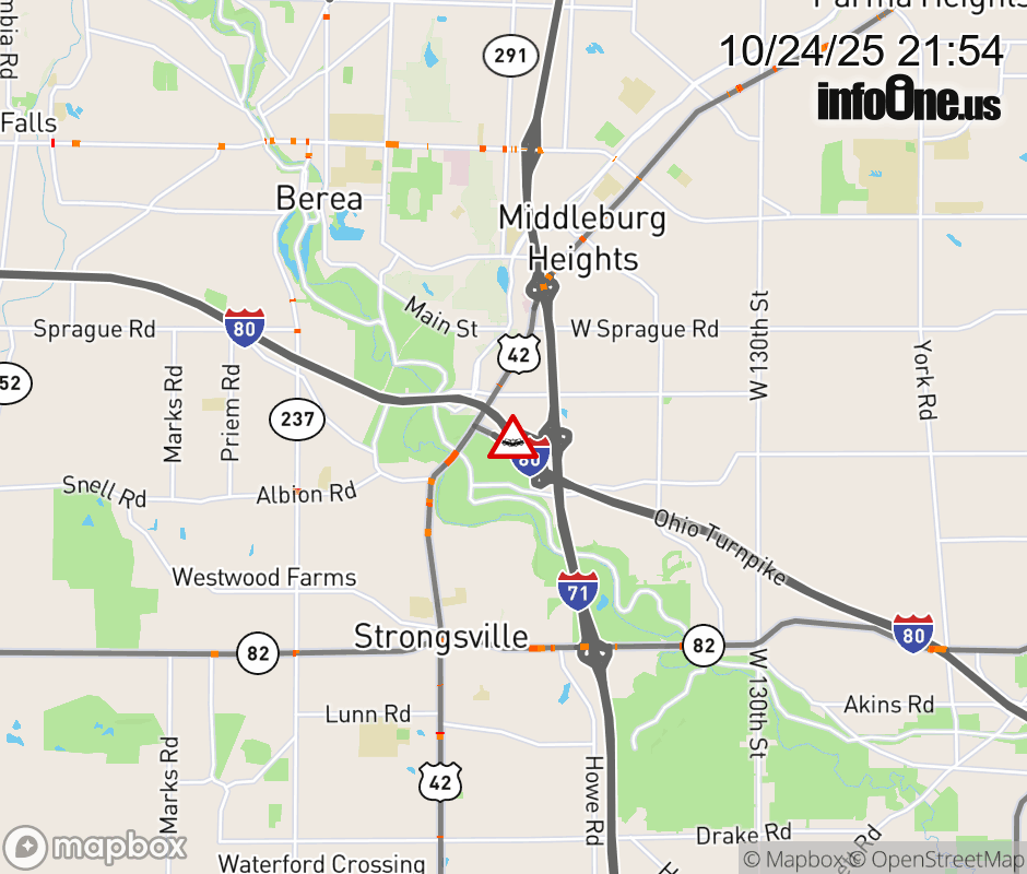 Expect lane closures on I-80 West (Ohio Turnpike) beyond I-71, due to a crash. ![]() |