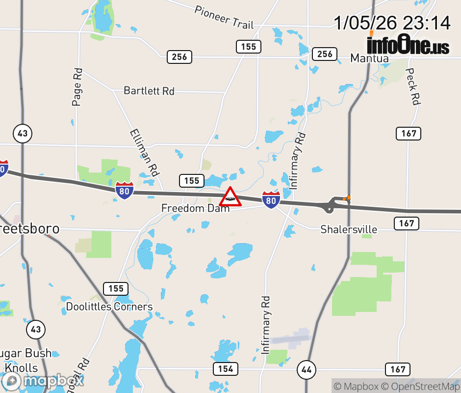 Expect lane closures on I-80 East (Ohio Turnpike) beyond I-480/SR-14, due to a crash. ![]() |