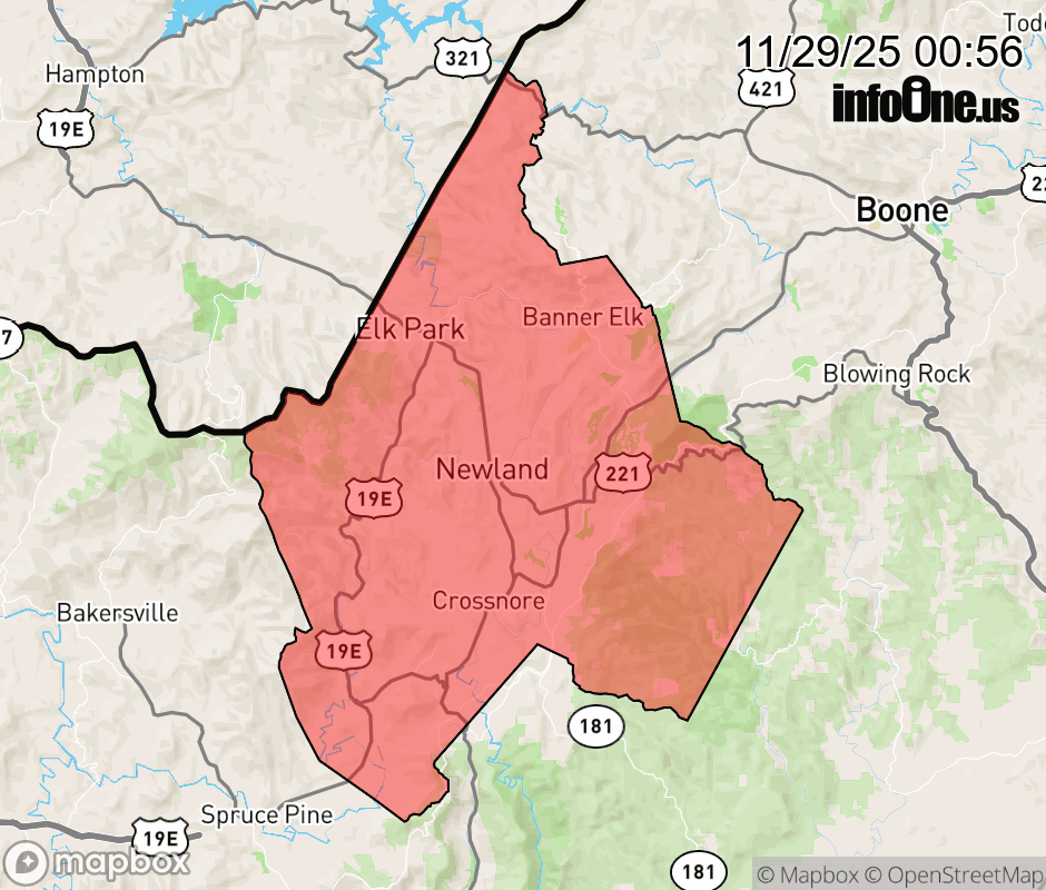 Canceled 11/29/25 12:54 PM Winter Weather Advisory issued November 29 at 12:55AM EST until November 30 at 9:00AM EST by NWS Greenville-Spartanburg SC * WHAT... Freezing rain expected. Total ice accumulations around a light glaze. * WHERE... Avery County. * WHEN... From 1 AM to 9 AM EST Sunday. * IMPACTS... Icing may create slippery conditions on roads, bridges and sidewalks. ![]() |