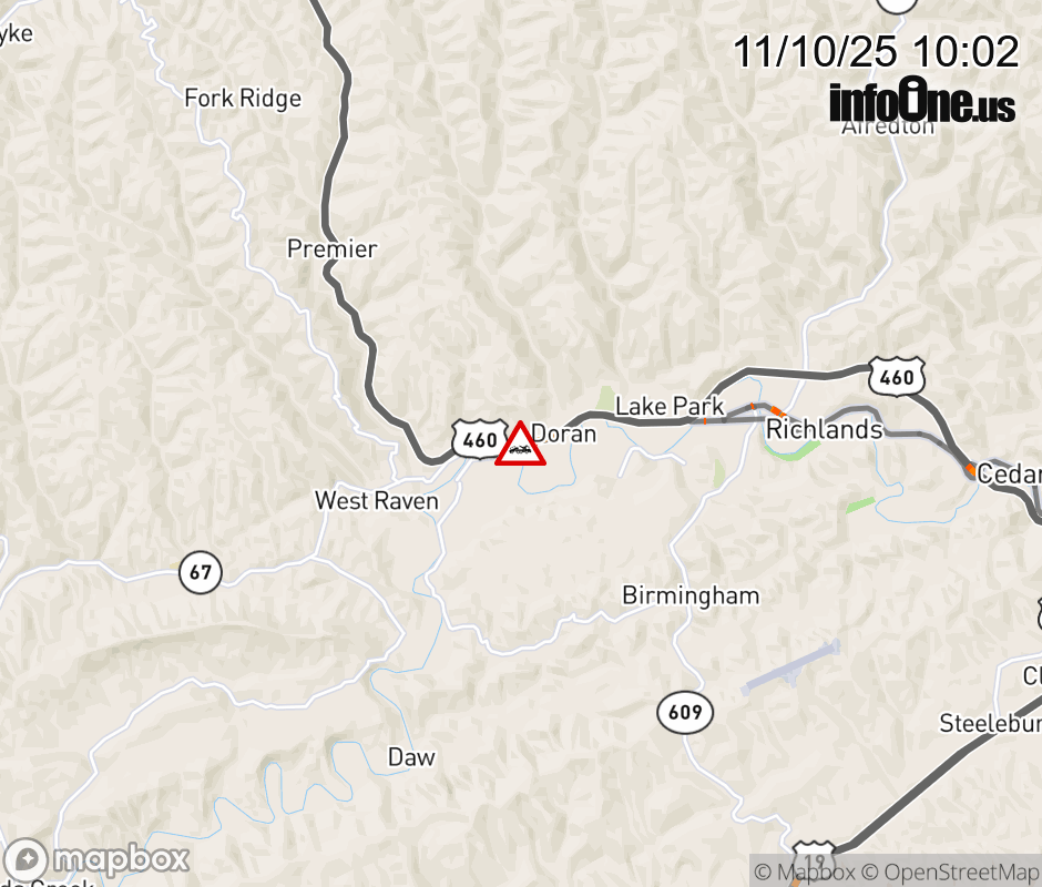 On US-460 in the County of Tazewell, in the vicinity of VA-67W, motorists can expect delays due to a disabled vehicle. All east lanes are closed. All west lanes are closed. Updated: Mon 11/10/25 10:02 AM EST ![]() |