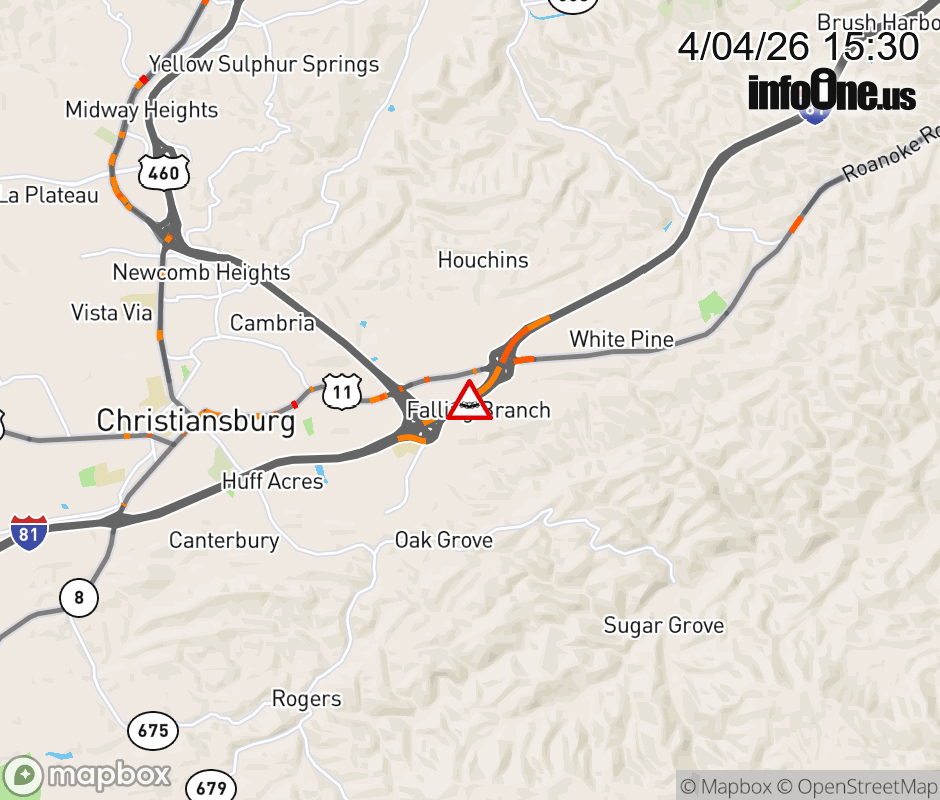 On I-81 at mile marker 118 in the County of Montgomery, motorists can expect delays due to a vehicle crash. The north exit 118 narrows. Updated: Sat 4/4/26 3:30 PM EDT ![]() Updated: Sat 4/4/26 3:30 PM EDT |