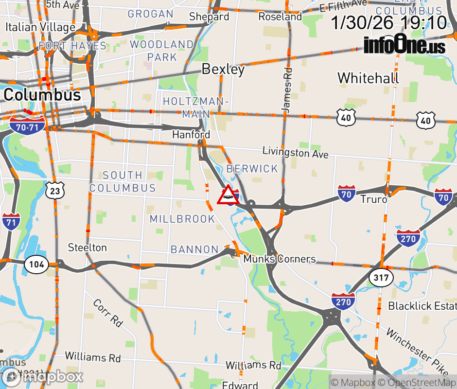 The left shoulder is blocked on I-70 West beyond US-33, due to a crash. ![]() |