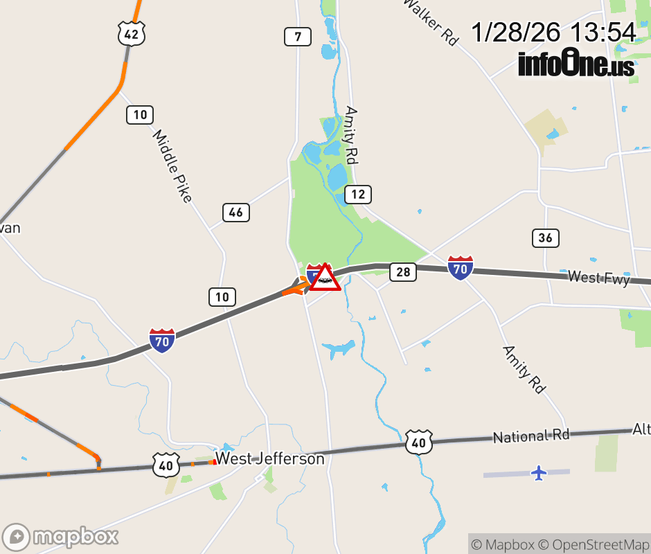 The right lane is blocked on I-70 East beyond SR-142/Plain City, due to a crash. Updated: Wed 1/28/26 1:54 PM EST ![]() Updated: Wed 1/28/26 1:54 PM EST |