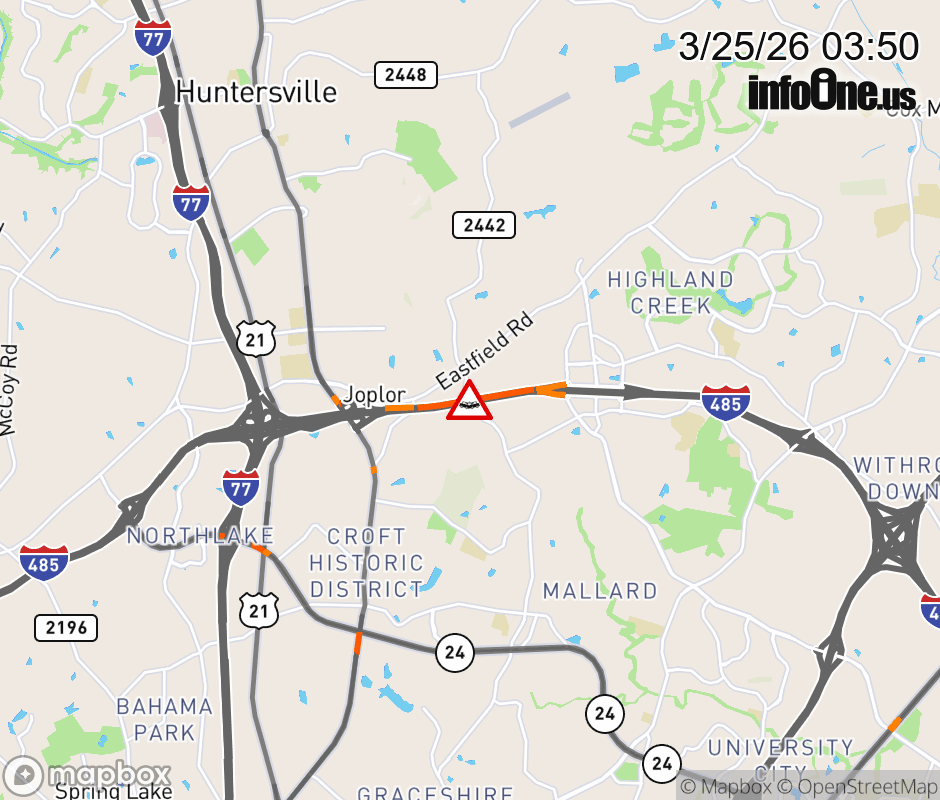 Location: I-485O at MM 24, NC Vehicle Crash.
