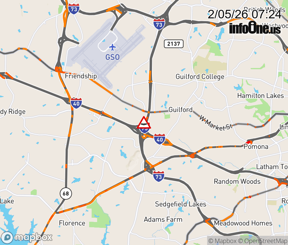 The ramp is closed to I-40 East at I-73 south exit 103B. ![]() |