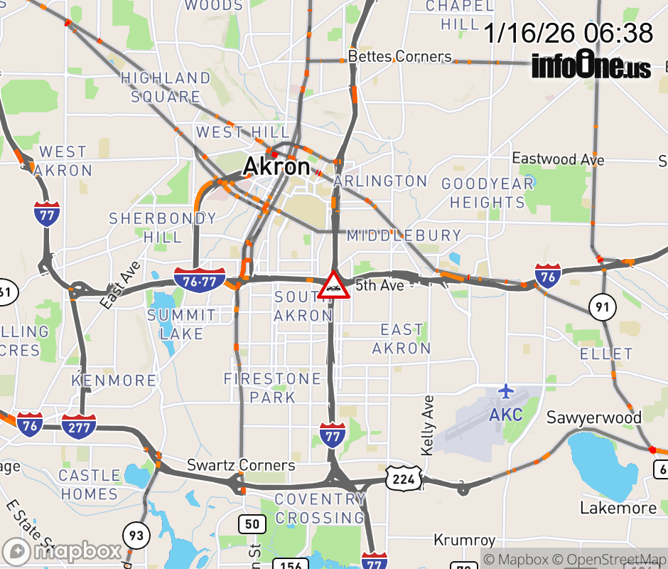 The left shoulder is blocked on Ramp I-76 West to I-77 South, due to a disabled vehicle. ![]() |