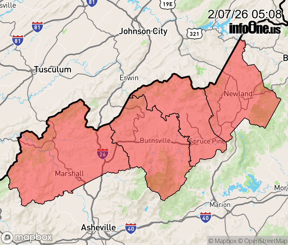 Canceled 2/7/26 5:52 AM Winter Weather Advisory issued February 7 at 5:07AM EST until February 7 at 7:00AM EST by NWS Greenville-Spartanburg SC * WHAT... Snow. Additional snow accumulations up to one inch. Winds gusting as high as 60 mph, and up to 70 mph on higher ridgetops. * WHERE... Avery, Madison, Mitchell, and Yancey Counties. * WHEN... Until 7 AM EST this morning. * IMPACTS... The snowfall will create slippery and snow covered roadways. Very strong winds could cause extensive damage to trees and power lines. ![]() |