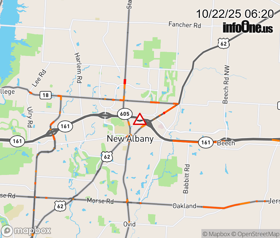 Ramp to US-62 from SR-161 East is blocked due to crash. ![]() |