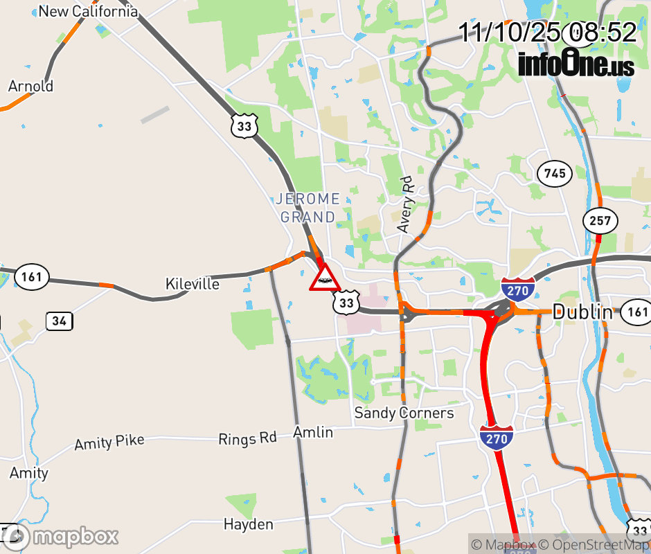 The right lane is blocked on US-33/SR-161 West beyond Avery - Muirfield Dr, due to a crash. ![]() |