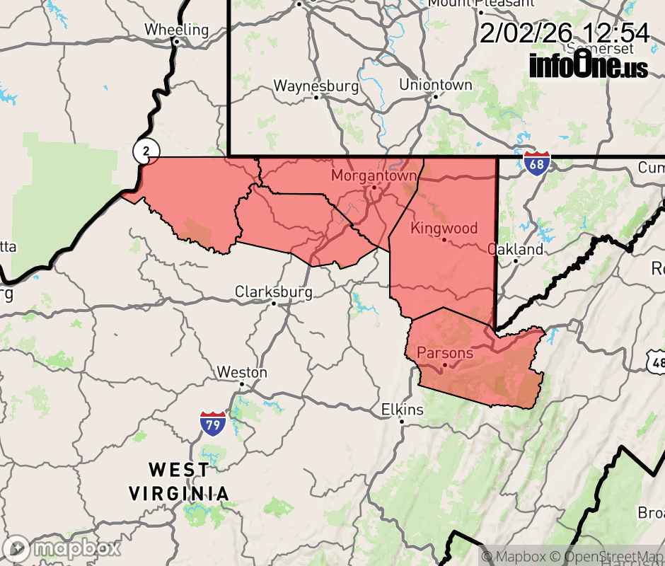 Canceled 2/2/26 9:48 PM Winter Weather Advisory issued February 2 at 12:53PM EST until February 4 at 1:00AM EST by NWS Pittsburgh PA * WHAT... Snow expected. Total snow accumulations between 1 and 3 inches falling mainly during the evening commute. Locally higher amounts possible in the higher terrain of Preston and Tucker Counties. * WHERE... A portion of northern West Virginia. * WHEN... From 10 AM Tuesday to 1 AM EST Wednesday. * IMPACTS... Plan on slippery road conditions as snow may create hazardous conditions that impact the Tuesday afternoon and evening commute. ![]() |