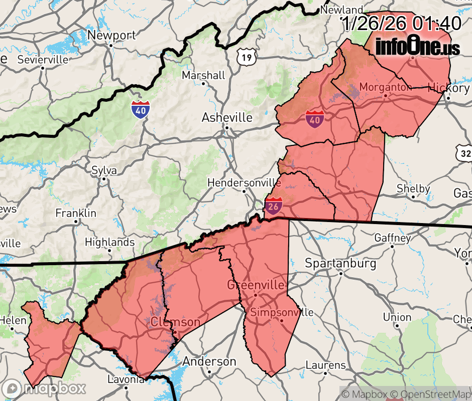Canceled 1/26/26 2:31 AM Cold Weather Advisory issued January 26 at 1:38AM EST until January 27 at 12:00PM EST by NWS Greenville-Spartanburg SC * WHAT... Very cold wind chills as low as 9 below expected. * WHERE... In Georgia, Habersham County. In North Carolina, Burke Mountains, Caldwell Mountains, McDowell Mountains, Polk Mountains, and Rutherford Mountains Counties. In South Carolina, Greenville Mountains, Oconee Mountains, and Pickens Mountains Counties. * WHEN... From 6 PM this evening to noon EST Tuesday. * IMPACTS... The dangerously cold wind chills as low as 10 below zero could result in hypothermia or frostbite if precautions are not taken. ![]() |